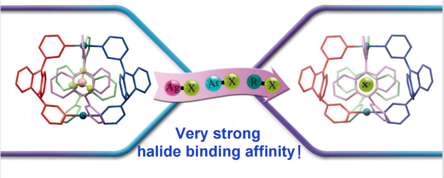 阴离子超分子化学在化合物提取、催化、传感、运输、阴离子模板合成以及超分子自组装等多个领域存在广泛应用。卤素阴离子在化学、生物、工业、环境等方面扮演重要角色,因此探索设计新型高亲和力的卤素离子受体并深入理解其独特的主-客体化学机制具有非常重要的学术价值和应用前景。相较于其他卤素离子受体,配位笼与卤素离子之间的主客体化学鲜有报道。近日,抖阴-抖阴在线观看